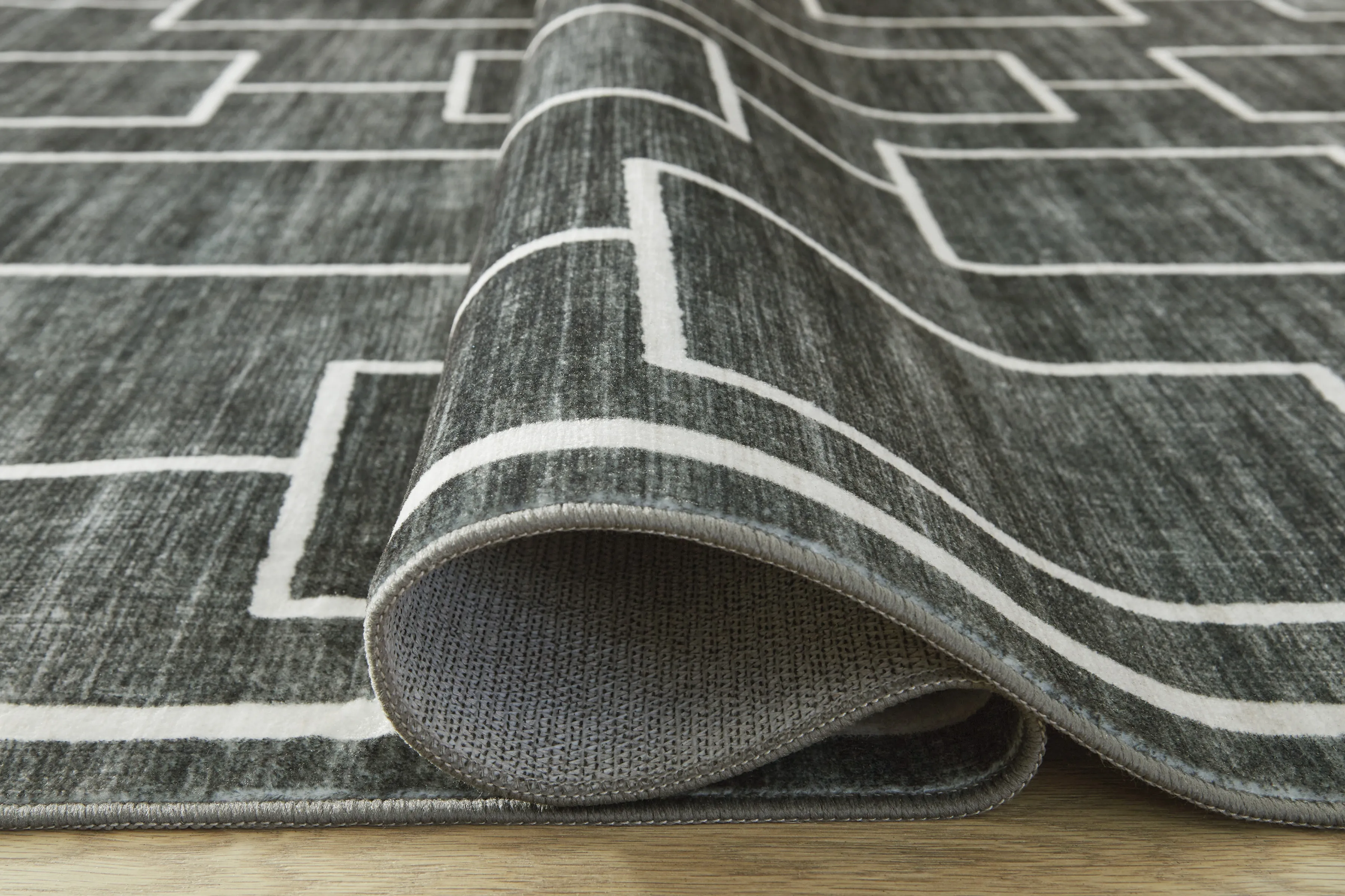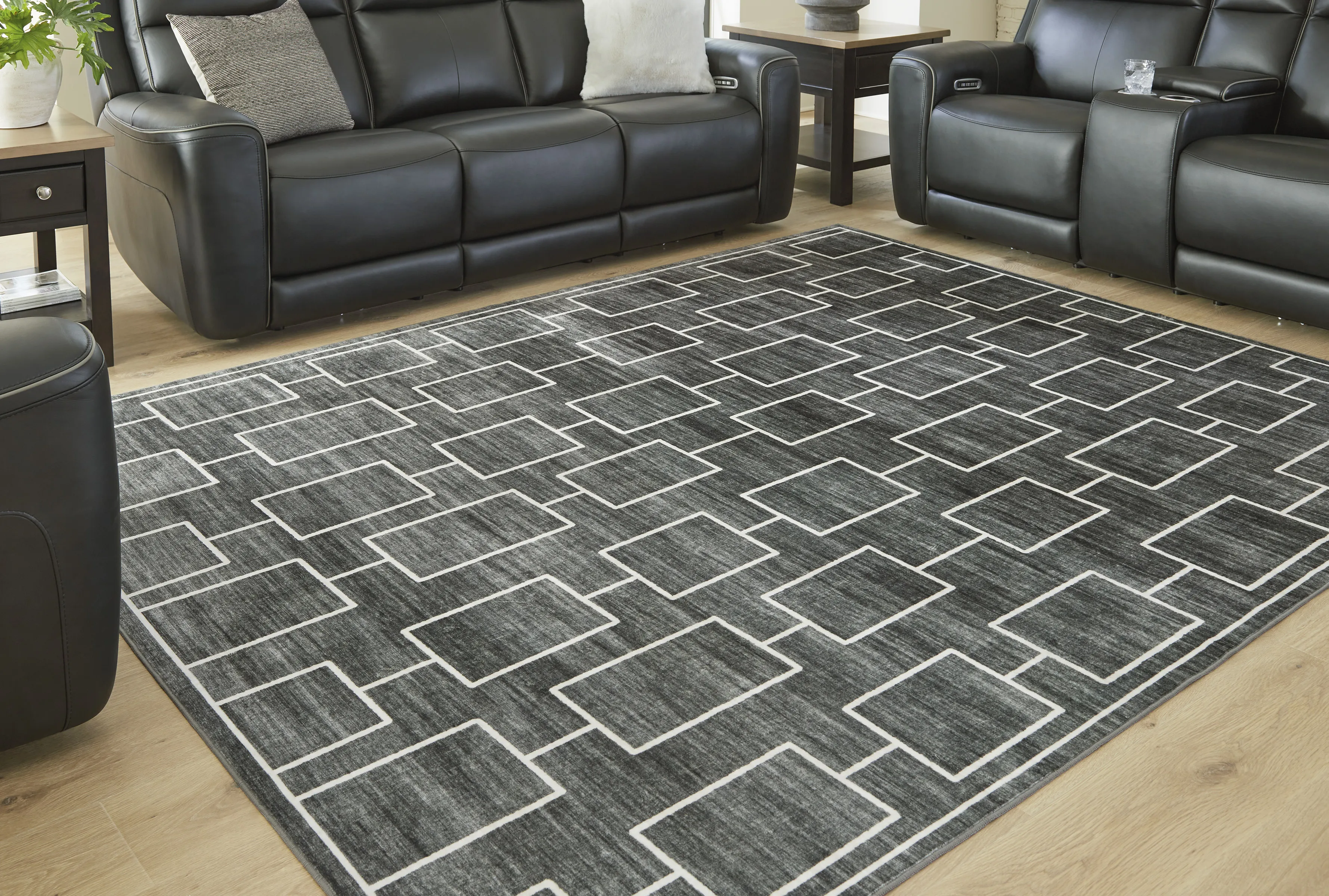 The soft, welcoming faux fur construction of this rug is complemented by a clean-lined geometric design. Its neutral black and gray tones give you the must-have versatility to pair it with existing contemporary decor. Plus it's machine washable for added convenience. Stage the rug under a bed or sofa for a fresh pop of pattern underfoot.