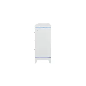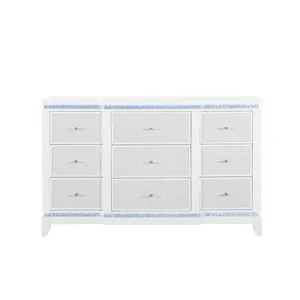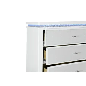 The Alina Dresser is an exquisite fusion of functionality and style. Its white finish harmonizes with LED-lit crushed glitter, while the perforated silver glam drawer fronts provide ample storage space that’s as accessible as it is striking. Each pull is a statement of luxury, ensuring your storage solutions are never dull.