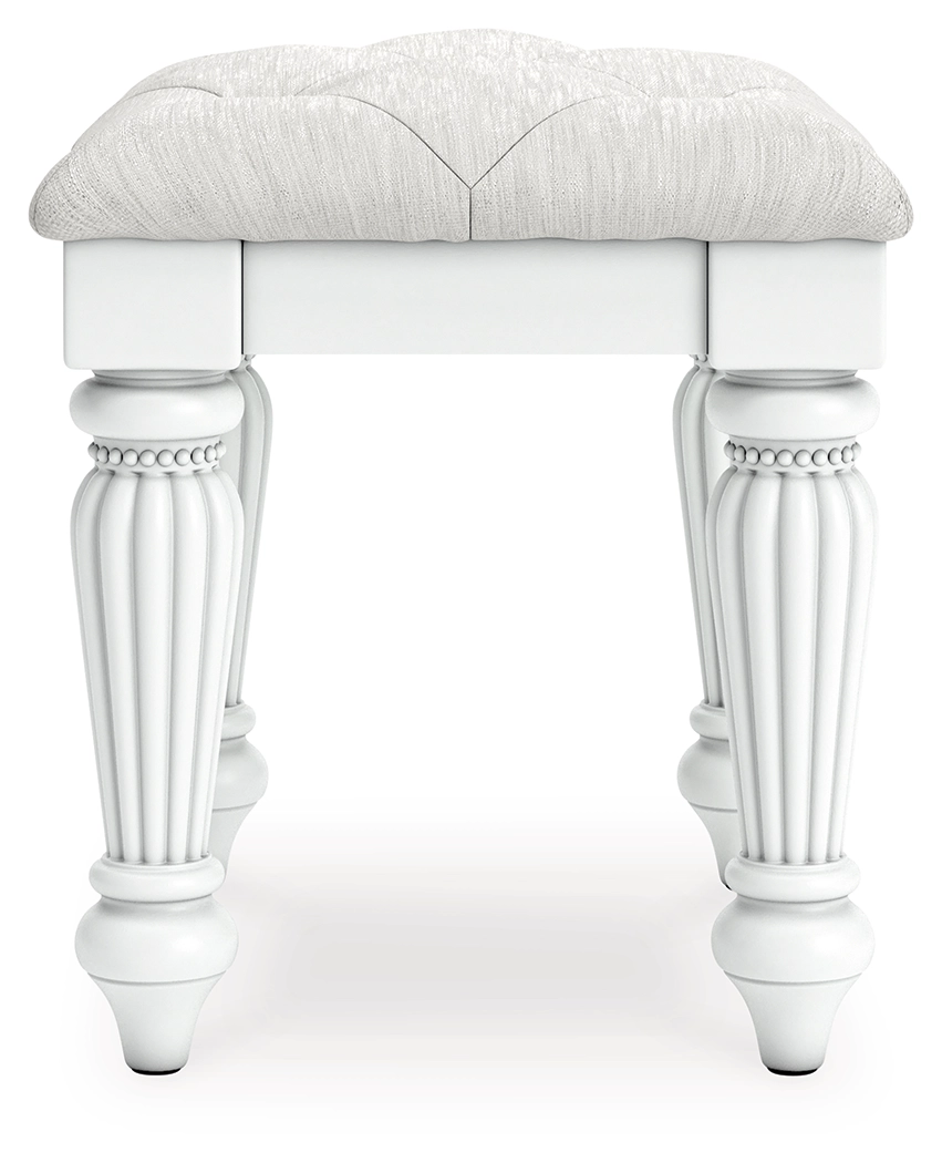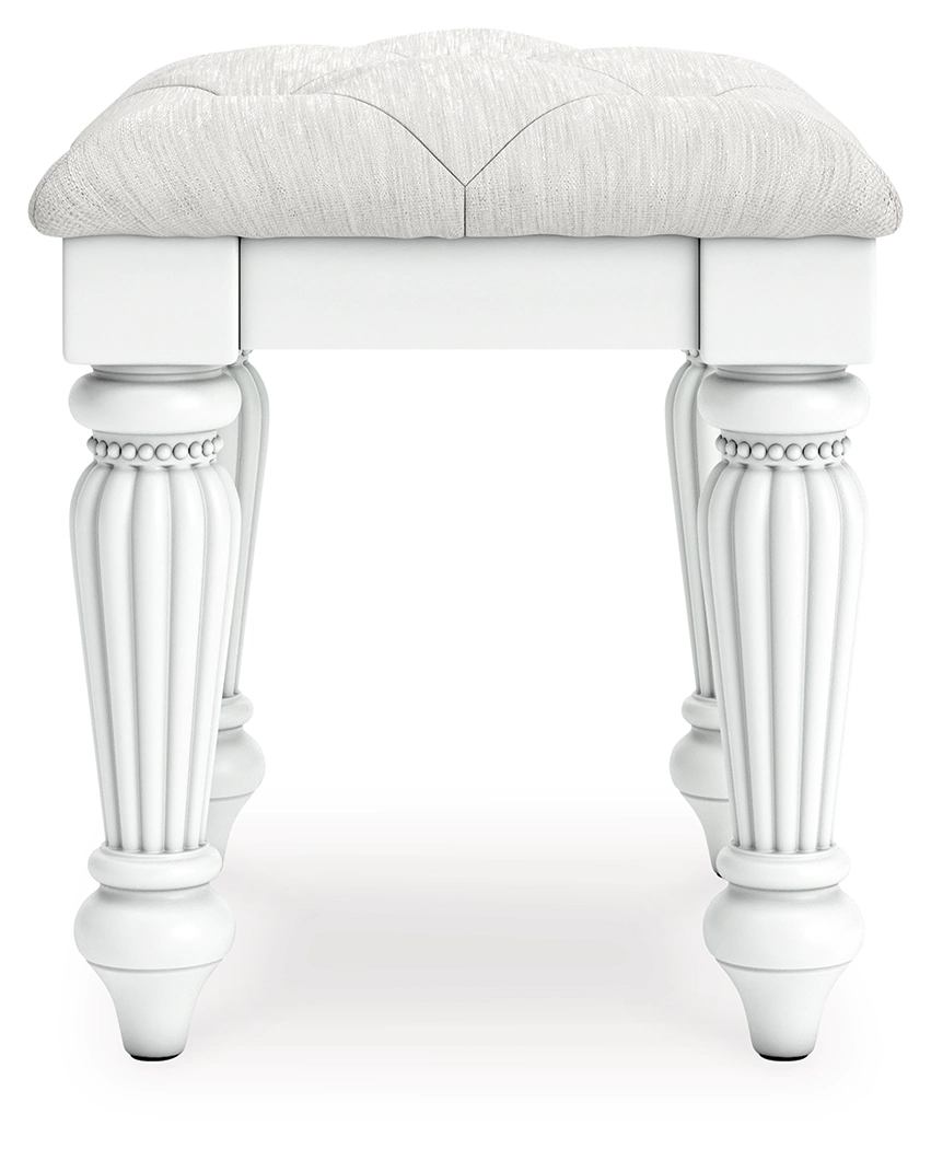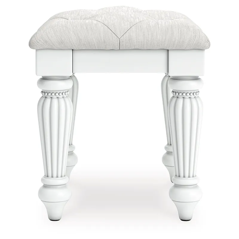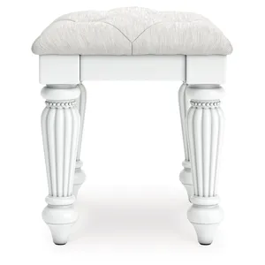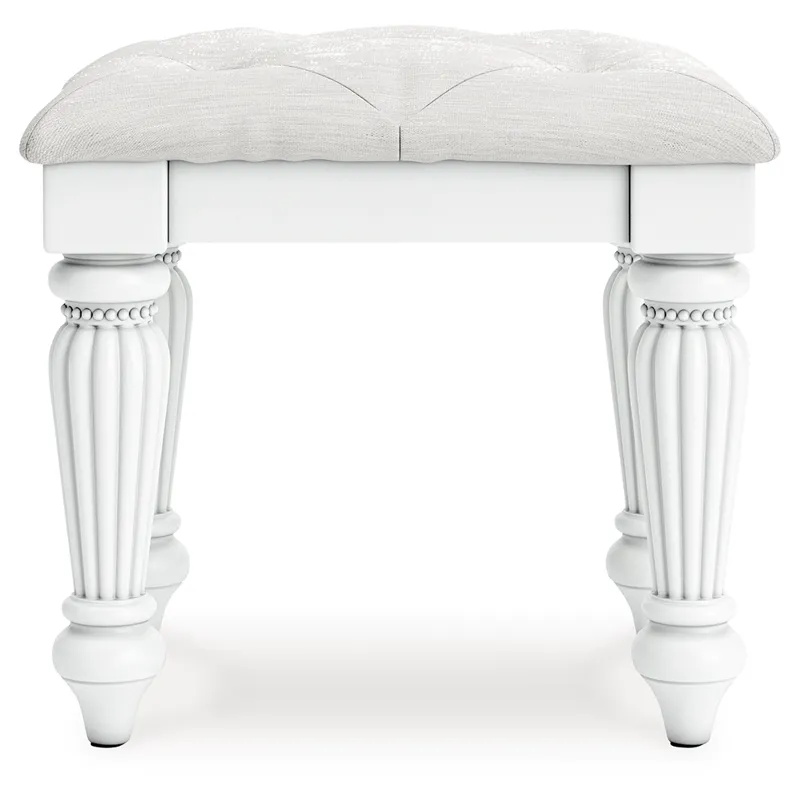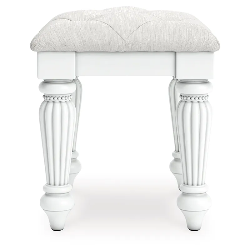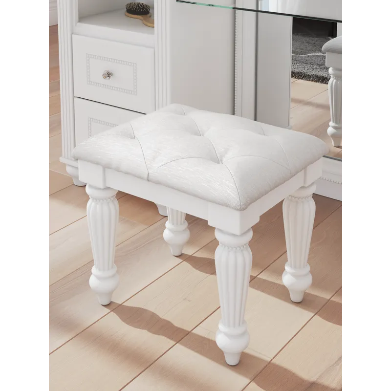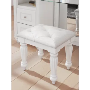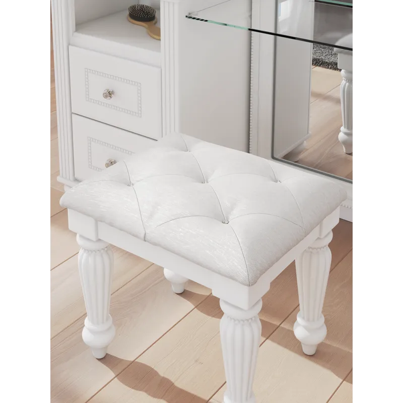 Fit for a princess. This vanity stool’s crisp matte white finish pairs with charming elements like turned legs, ornate beading and sumptuous button-tufted upholstery—perfect for your girly girl. This piece's crowning touches are sure to make your little one feel like royalty.