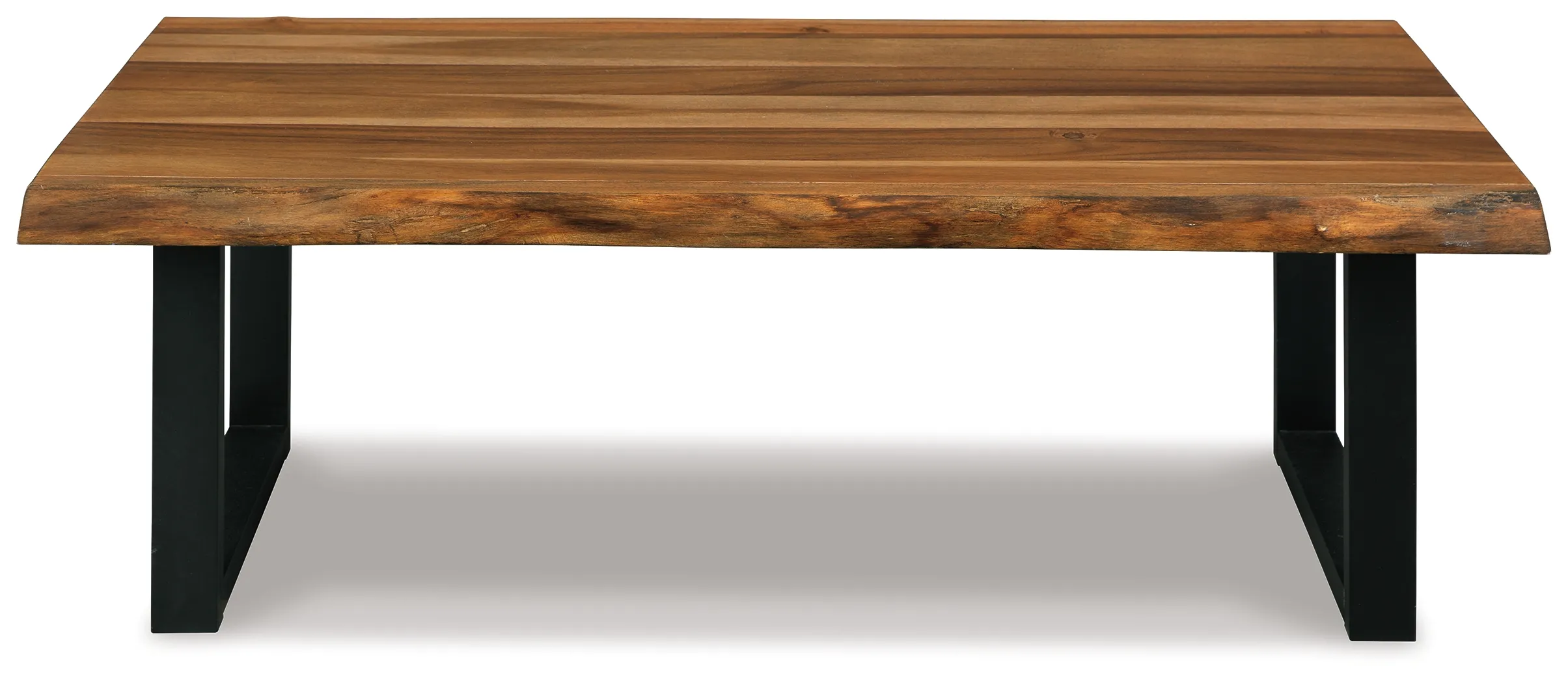 Enjoy the authentic look of “live” edge wood furnishings minus the hefty price tag with this striking coffee table. Rich, natural wood finish top, crafted with acacia veneers, is a look with real staying power. The dramatically cool “sled” legs add a contemporary vibe perfect for your urban loft or boho abode.