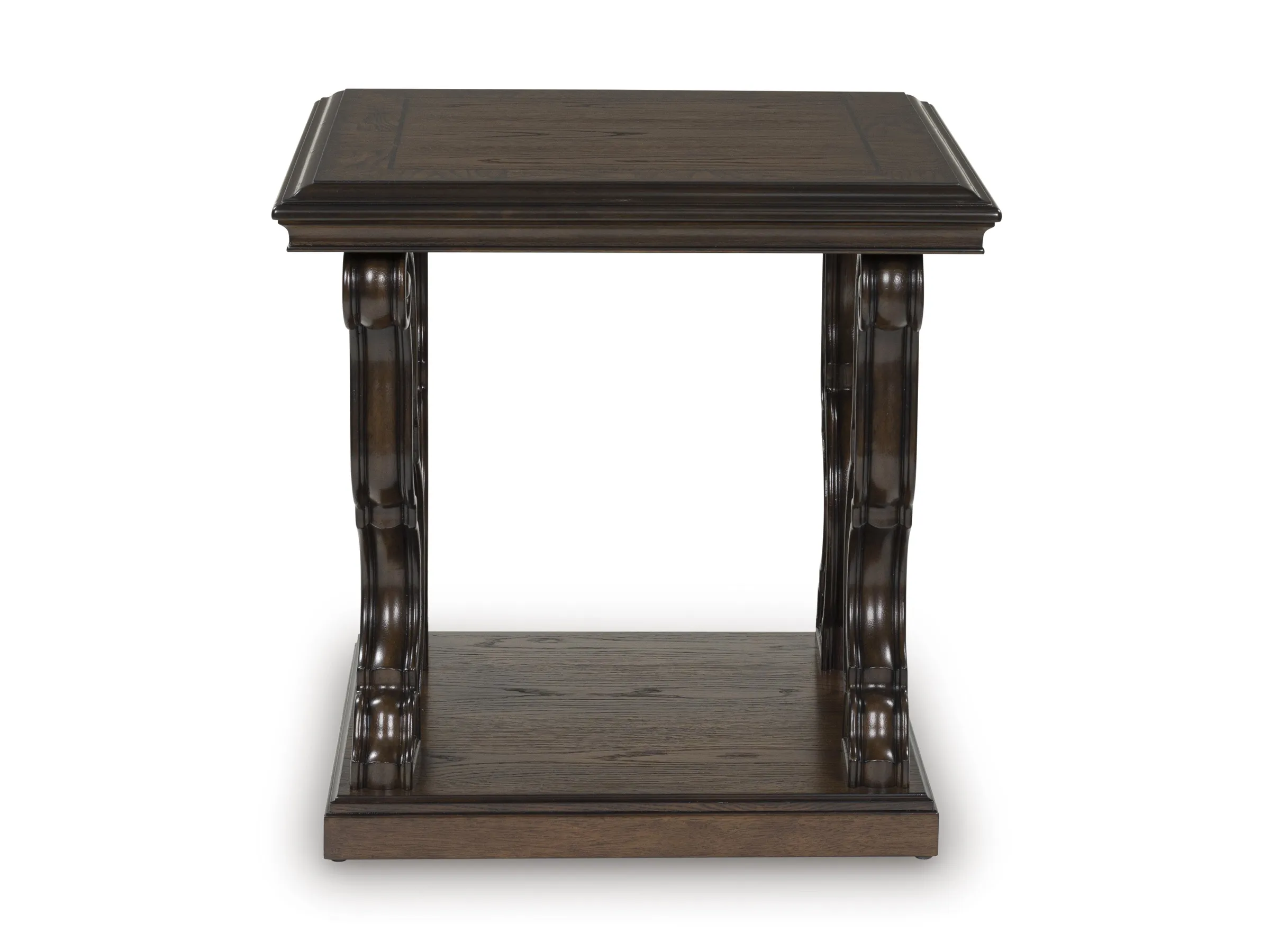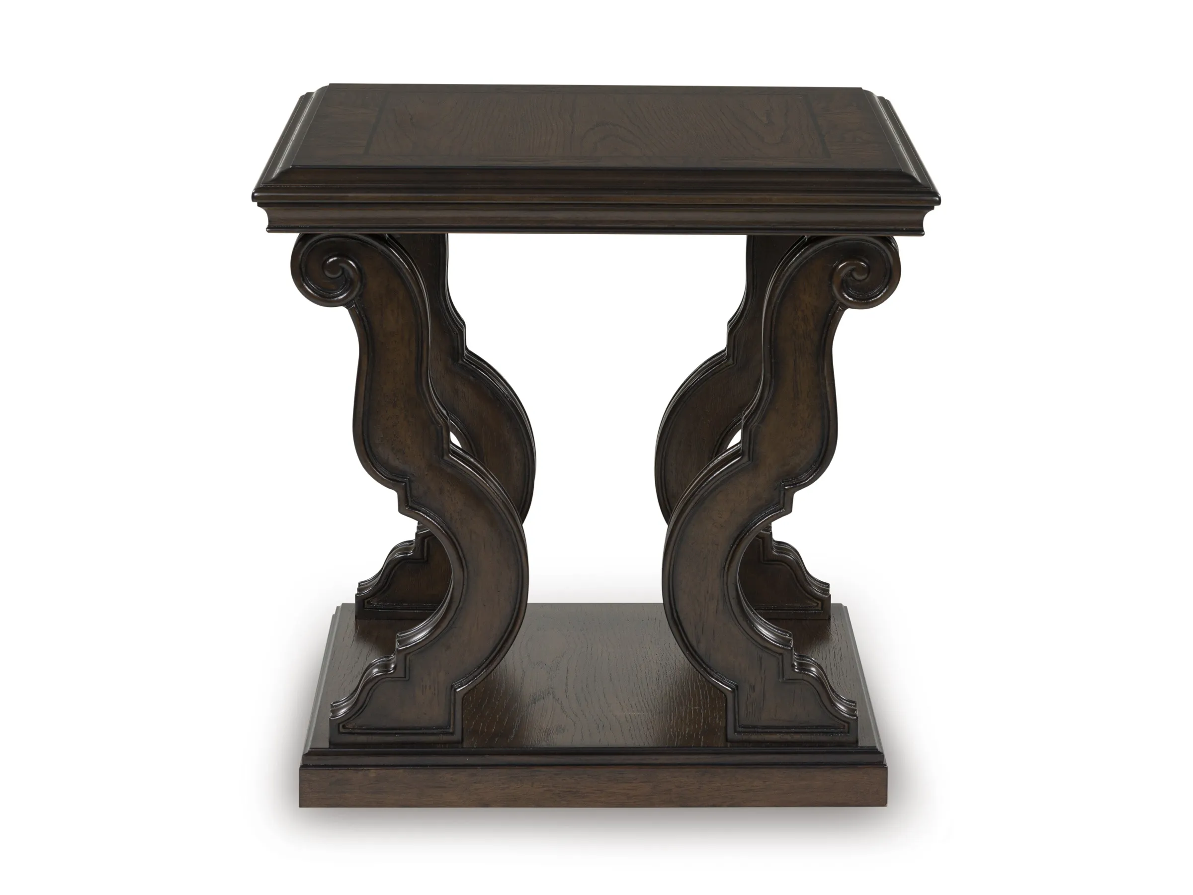 Lavish, luxurious living is within reach when you add this end table to your living room. Recalling a classic sense of refinement, its elegant scrolled legs make a beautifully bold statement. Ornate details on the apron add an air of opulence to the regal dark brown finish. The look is timeless. The feel? Right at home.