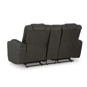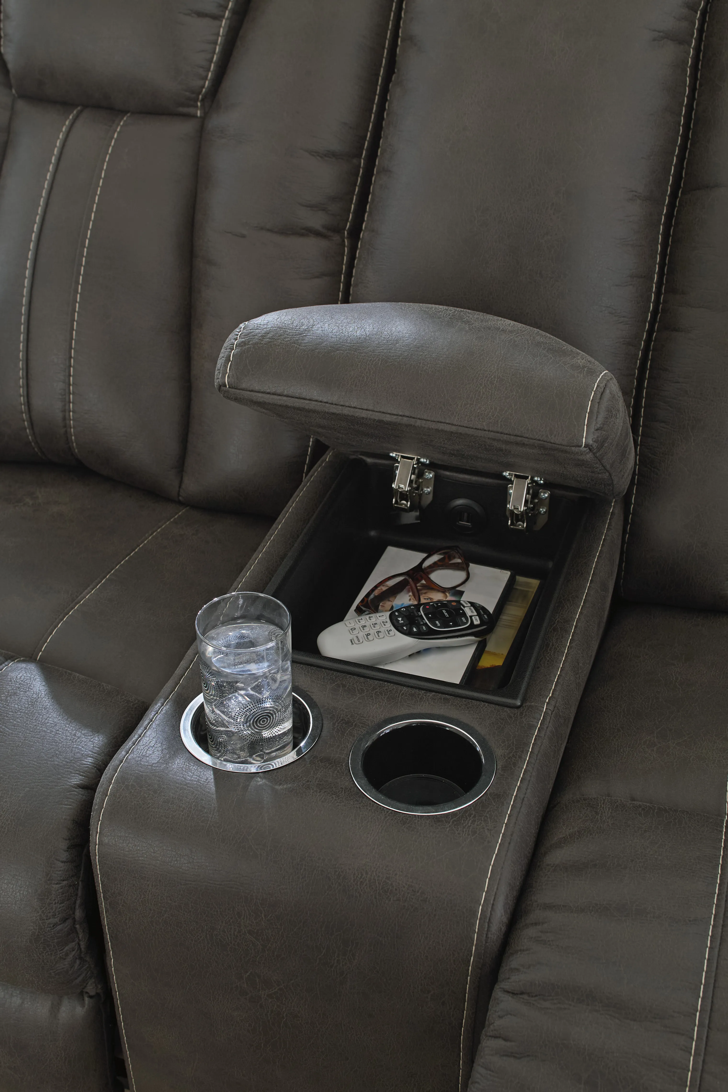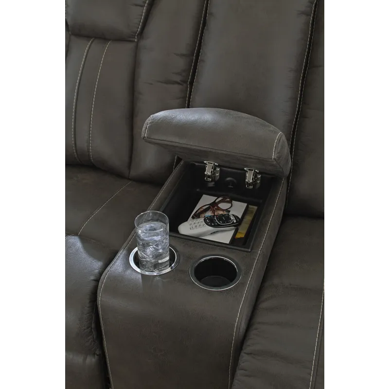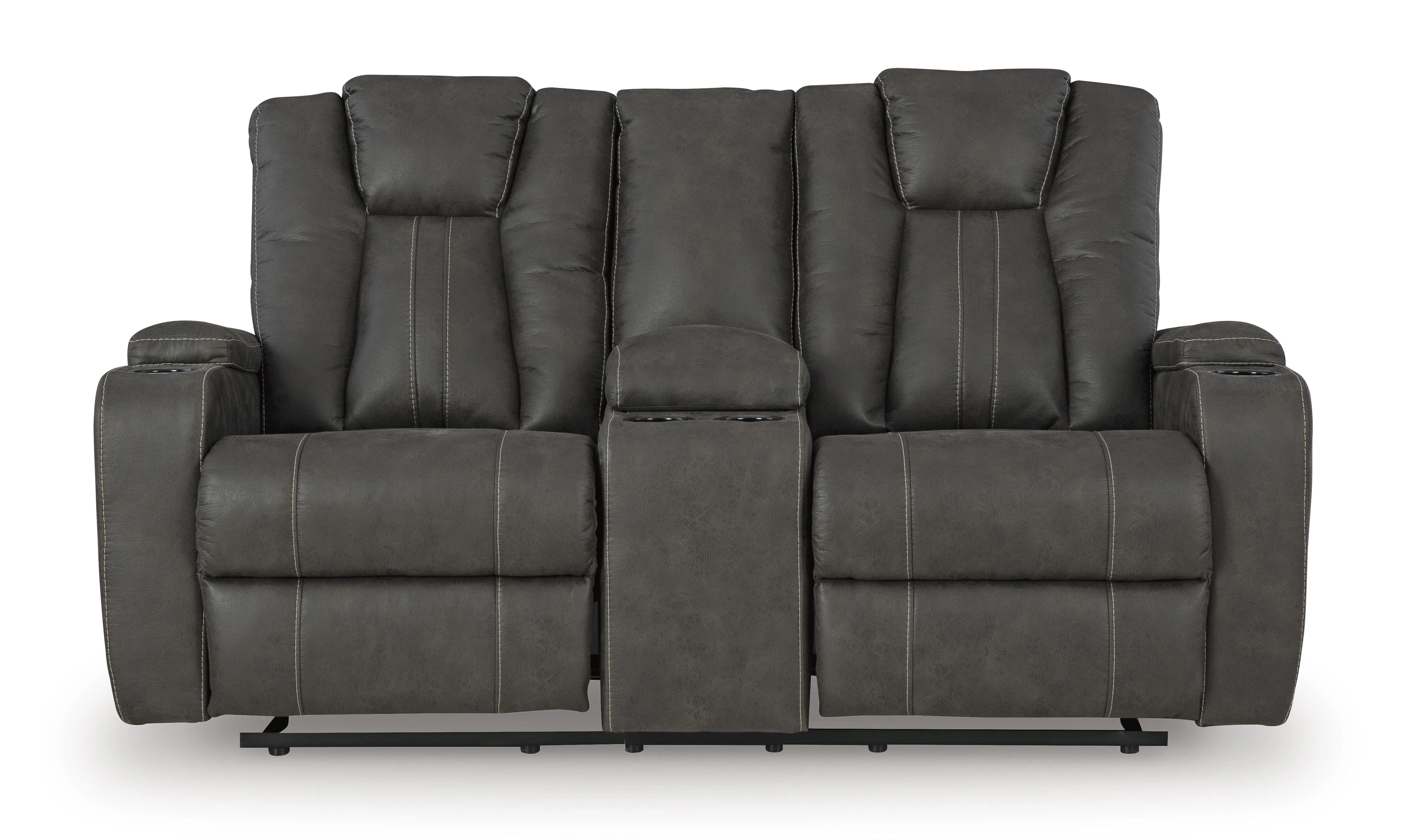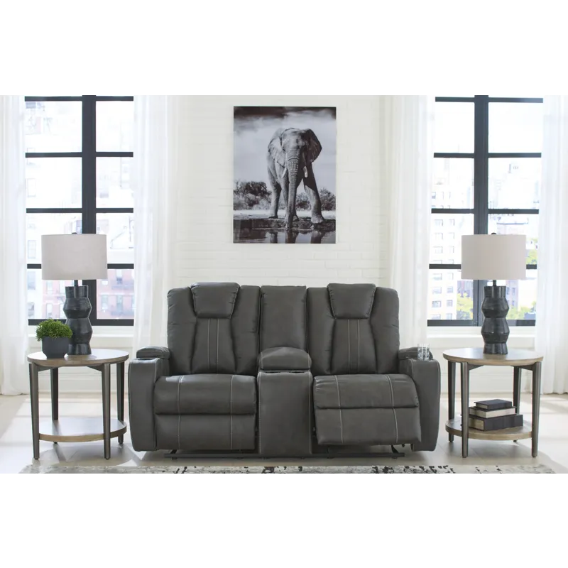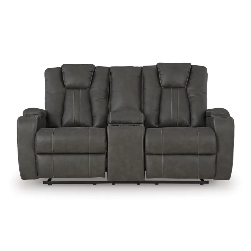 Built for everyday relaxation, this glider reclining loveseat with console takes a balanced approach to comfort. Its practical one-pull reclining motion allows you to kick back and unwind with ease. Universal in style, the richly hued faux leather suits aesthetics from casual to contemporary. Cup holders, storage and USB charging keep essentials close for a laid-back lounging experience.