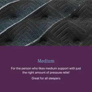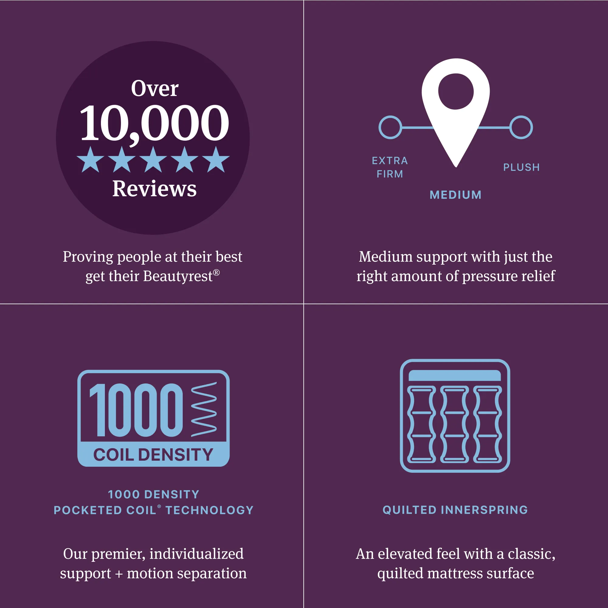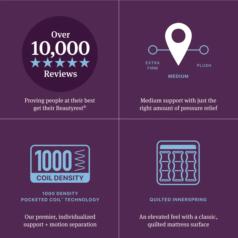 Step up to a world class sleep experience with our premier individualized support + motion separation, breathability and cooling, and responsive pressure relief with a classic, quilted surface Feel