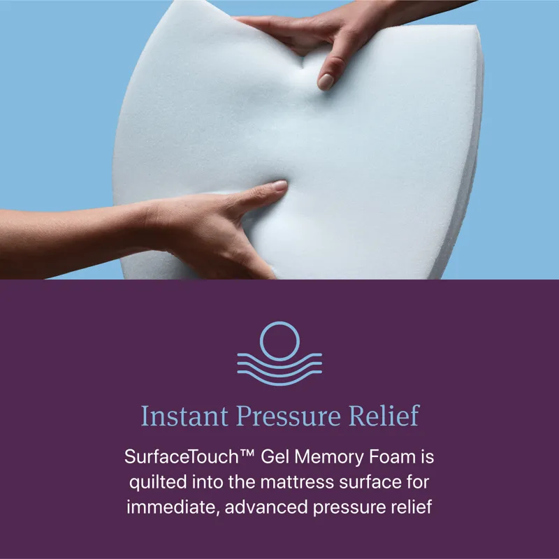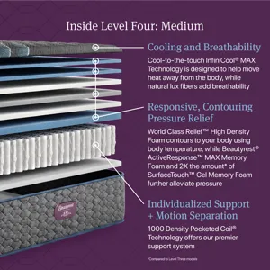 World Class Relief™ High Density Foam responsively reacts to body temperature for remarkable pressure relief, while thicker layers of Beautyrest® ActiveResponse™ MAX Memory Foam and SurfaceTouch™ Gel Memory Foam provide overall, upgraded pressure relief
