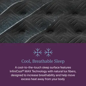 A cool-to-the-touch sleep surface with InfiniCool® MAX Technology is designed to help move excess heat away from the sleeper, while natural lux fibers provide added breathability
